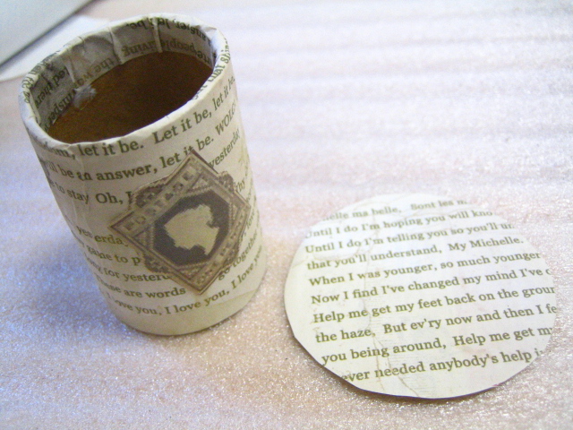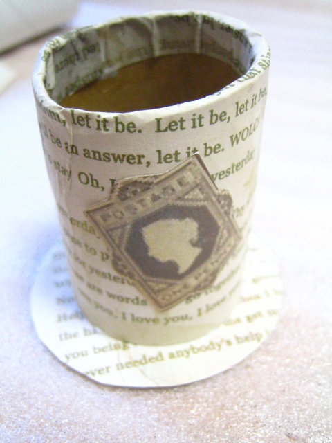 ラップ芯と土台をボンドでくっつけて
